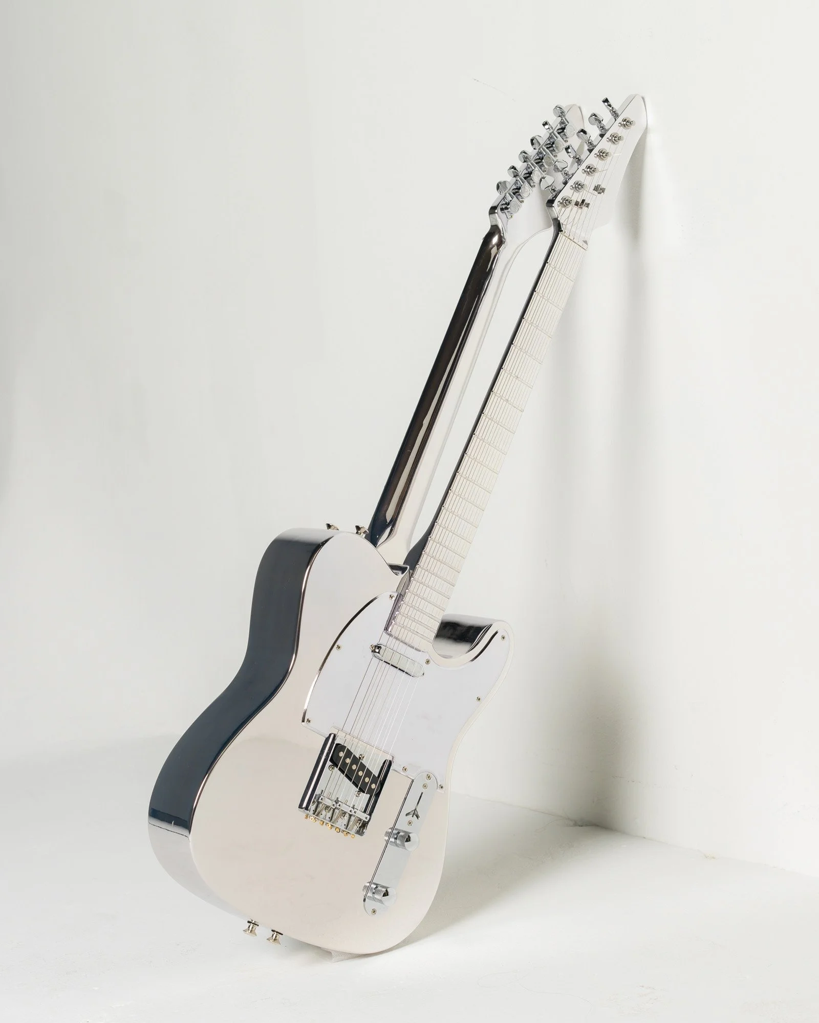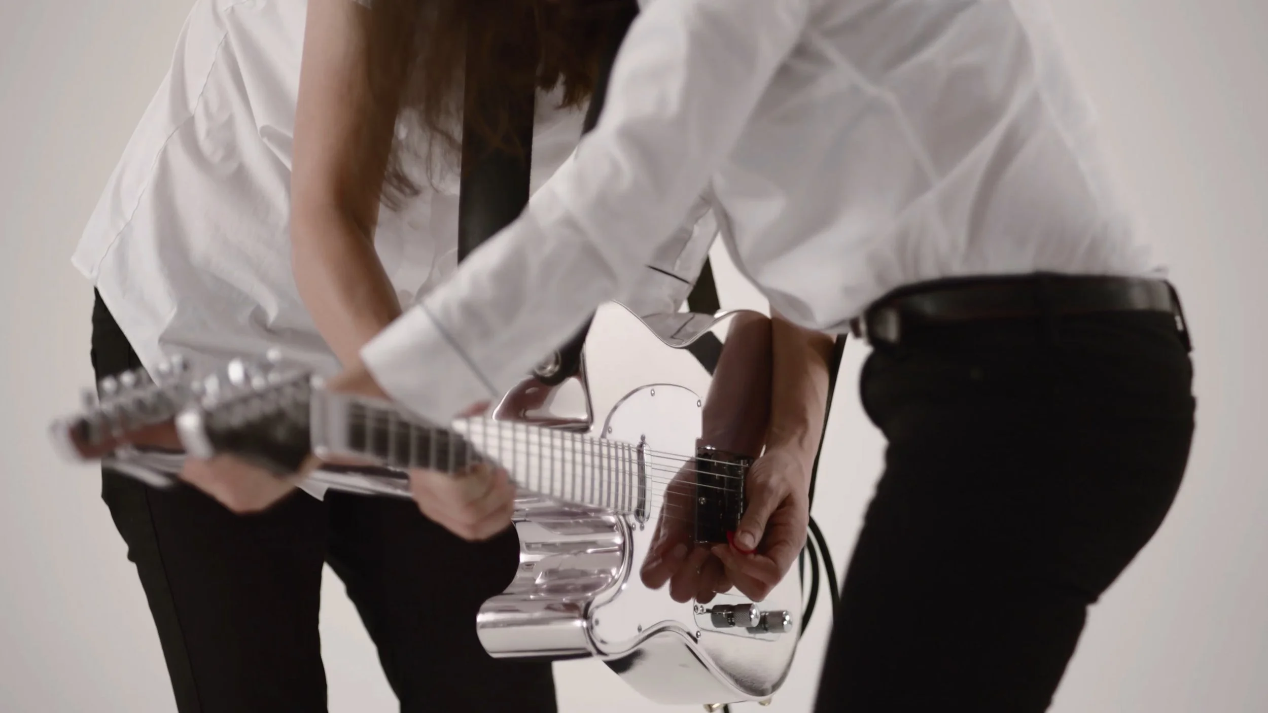 Initiated in 2009 with Doublesilverburst, where Tsabar fused a left handed and a right handed guitar together at the head (headstock) to create a single instrument. The two guitars now share a single set of guitar tuners, when one guitar is tuned the other goes out of tune. In 2010 Tsabar created Untitled (Double Face), in which two guitars joint to form one instrument that has no back. In 2016, Untitled (Double Face) was recreated to have a Chrome coat, continuing the reflection, doubling and mirroring onto the sculpture’s surface. In that same year a group of photographs documenting the performance were produced, to be exhibited both separate and along side the chromed sculpture. In 2017 a video art of the performance was made titled Stranger.