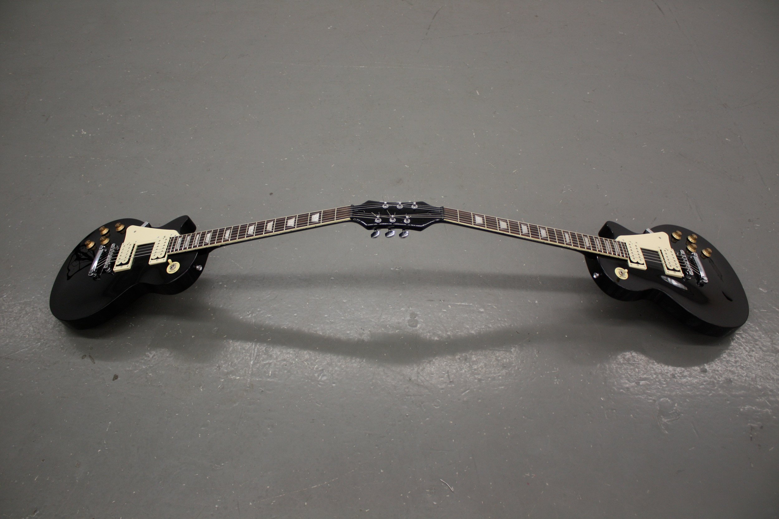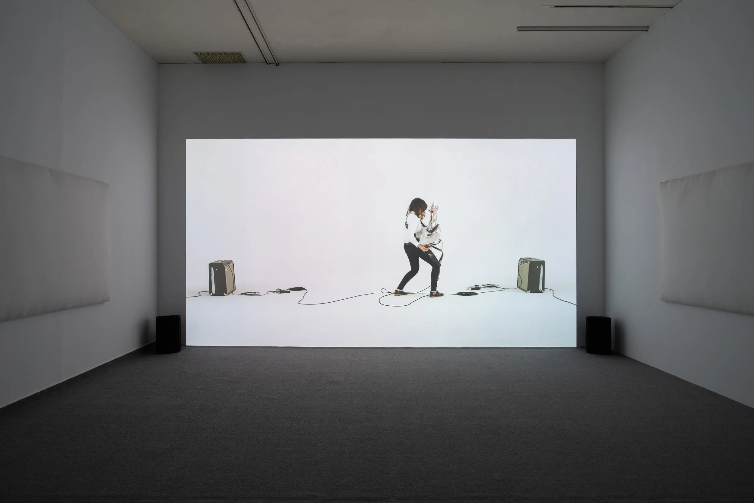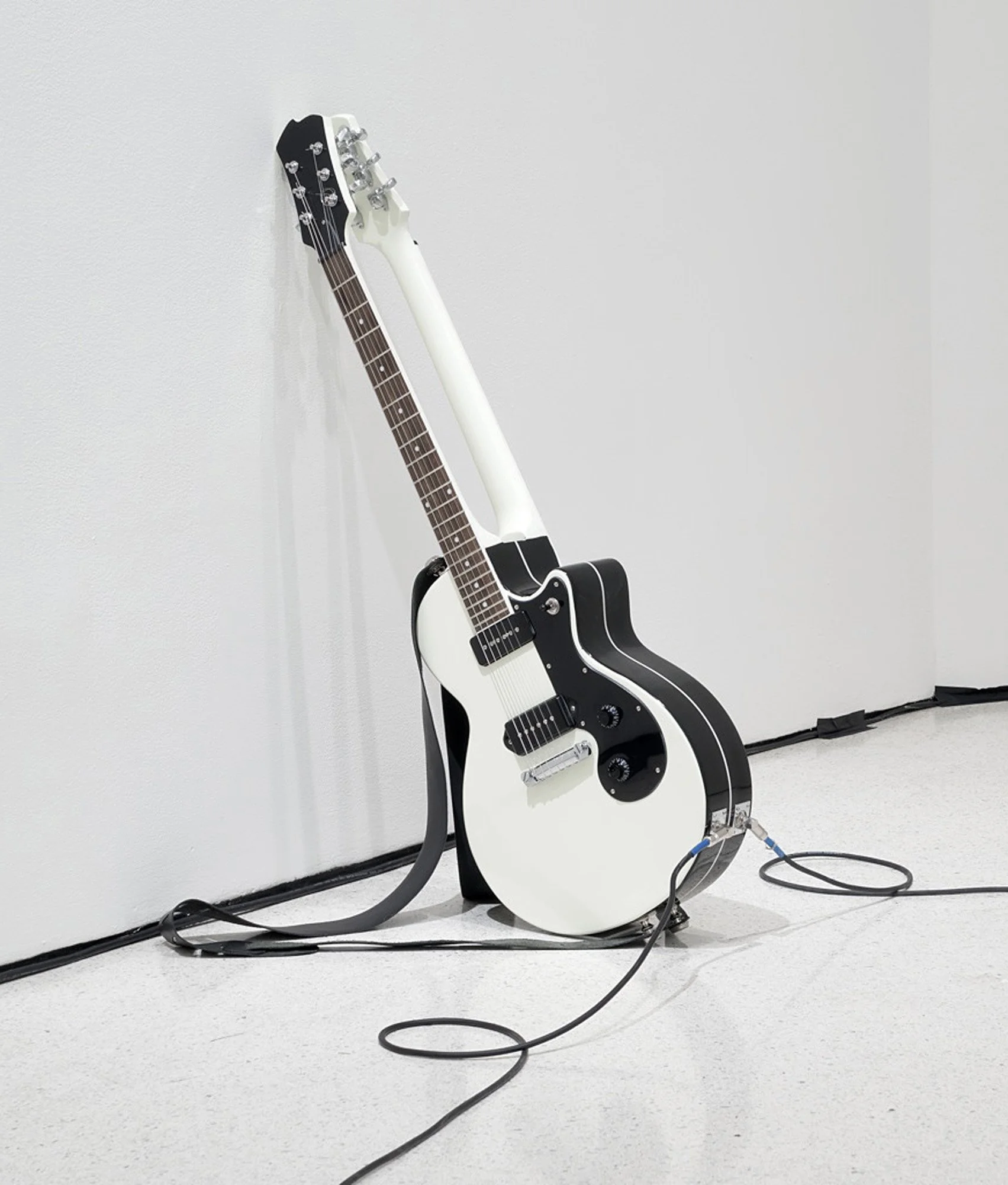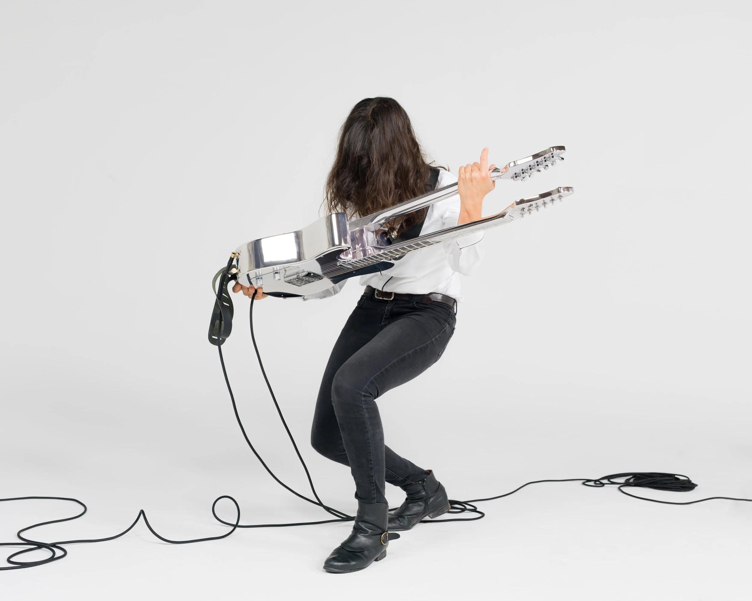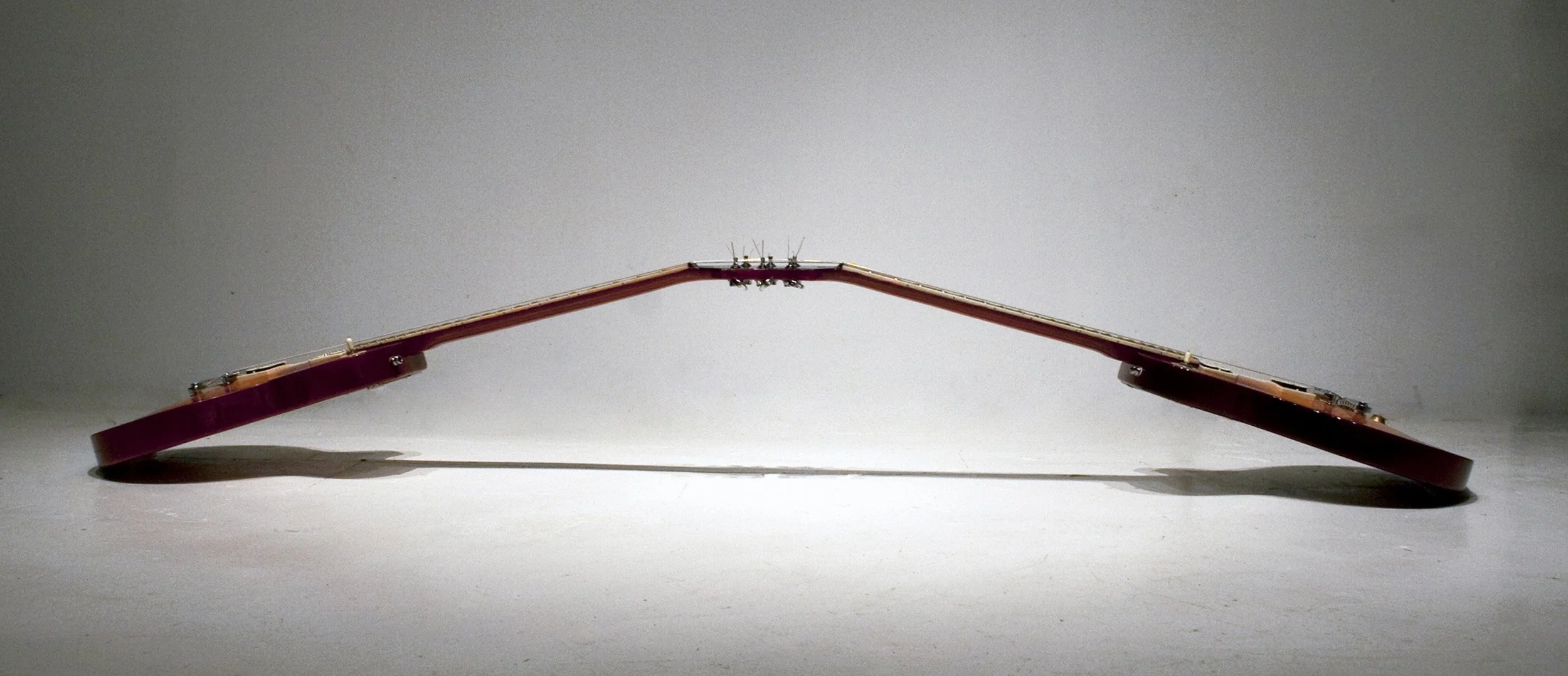 The Double Guitar is a series of works in which Tsabar revisits the electric guitar as instrument and icon within the history of Rock music. Through this group of works Tsabar rethinks the objects soloist, gendered placement and the actions and movements associated with its performative history.